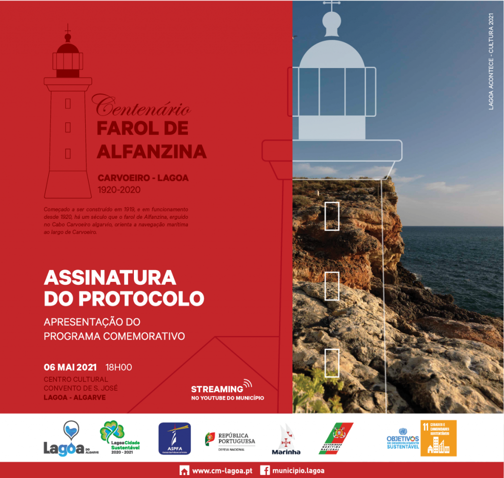 Será celebrado no dia 6 de maio de 2021, um protocolo de colaboração entre a ASPFA – Associação Socioprofissional dos Faroleiros e a Câmara Municipal de Lagoa, tendo em vista as comemorações dos 100 anos do Farol de Alfanzina, intitulado de “Centenário do Farol de Alfanzina (1920-2020)”.